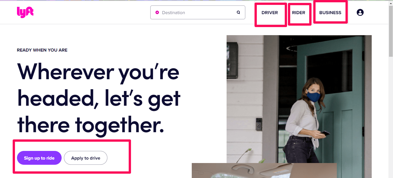 An example of a landing page with clear description of the services they offer. Source: Lyft