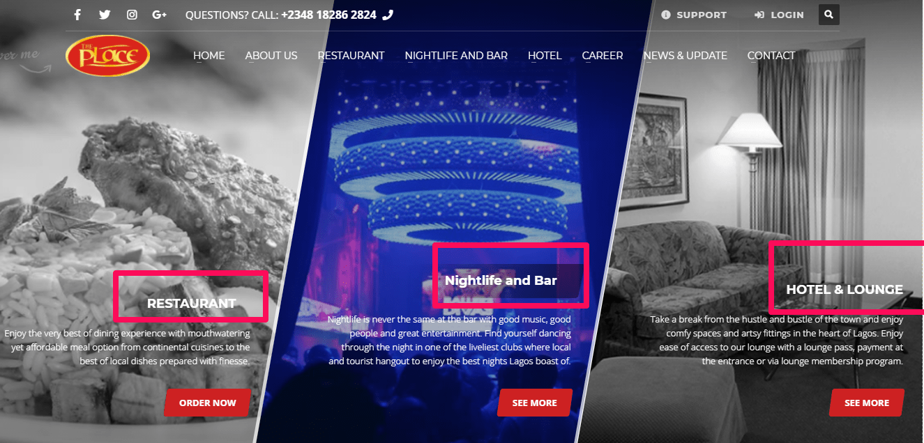 An example of a brand’s landing page showing the products and services they offer. Source: The Place