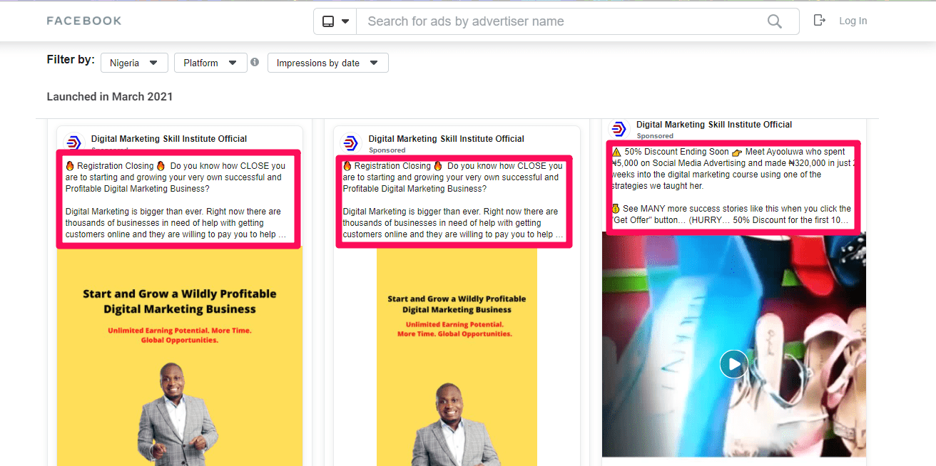 An example of what Facebook advertising looks like for Digital Marketing Skill Institute