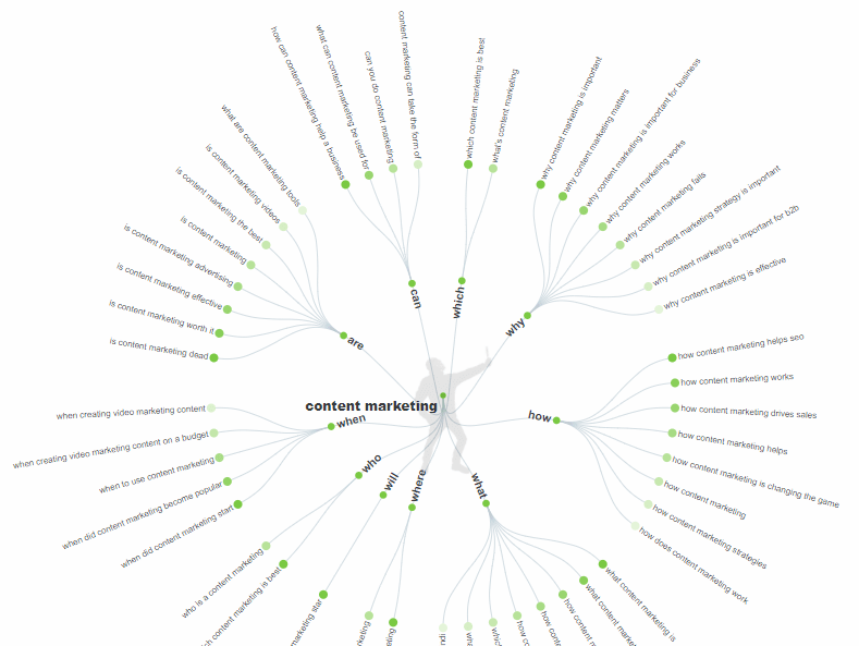 Take, for instance, you want to put out interesting content on “content marketing”, a simple search on the answer the public will give you data of what people ask of in the niche of content marketing.