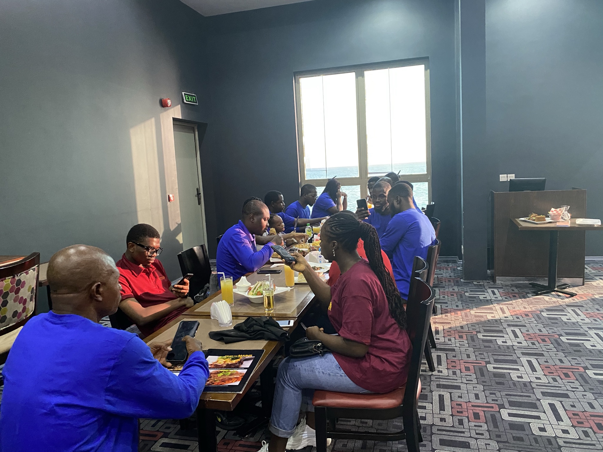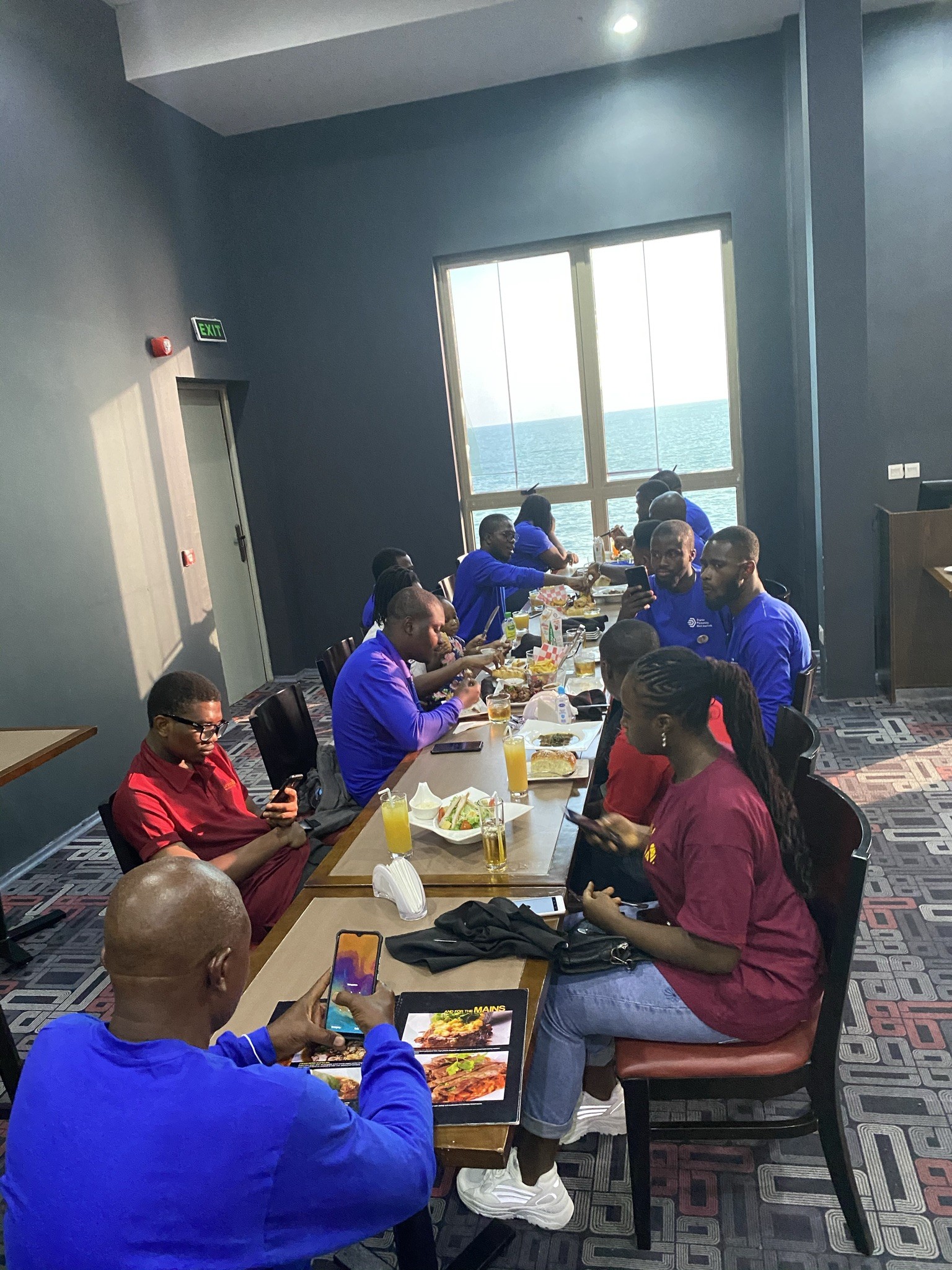 Ahh… did you say “natural light, ocean, and pictures?.. Lol, everyone quickly placed orders, mind you, Mr. Tobi said that we all had N5,000 to ourselves so you can order anything within that amount, so because we know how to use resources and maximize the output, so many people merged to get the best of platers while others stuck to just a simple meal.