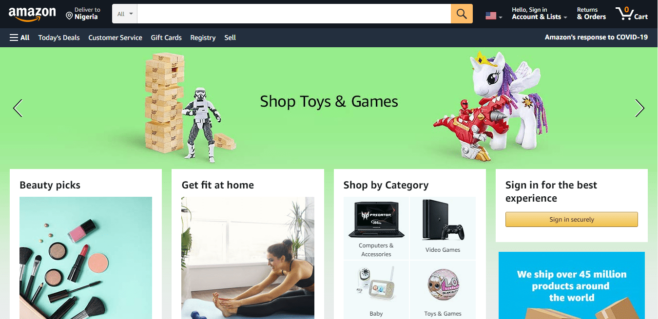 Your homepage should help your prospective customers to easily find the right product in regards to the items they’ve viewed before. Take a look at Amazon‘s homepage.