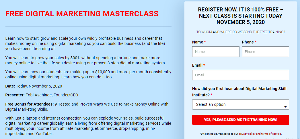 For instance, the leads magnet used for our lead generation campaign is our 14-days free digital marketing classes that our leads actually find so insightful and full of actionable strategies.