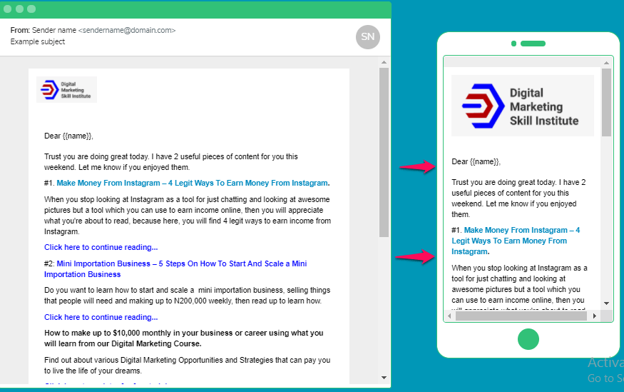 Right now, email marketing tool developers have designed their email marketing tools to give you a preview of what your email copy would look like on a mobile device before you send out, I will show you a screenshot from SendPulse, but I will also give you guidelines on how to write email copies that don’t feel overwhelming and clustered to the eyes.