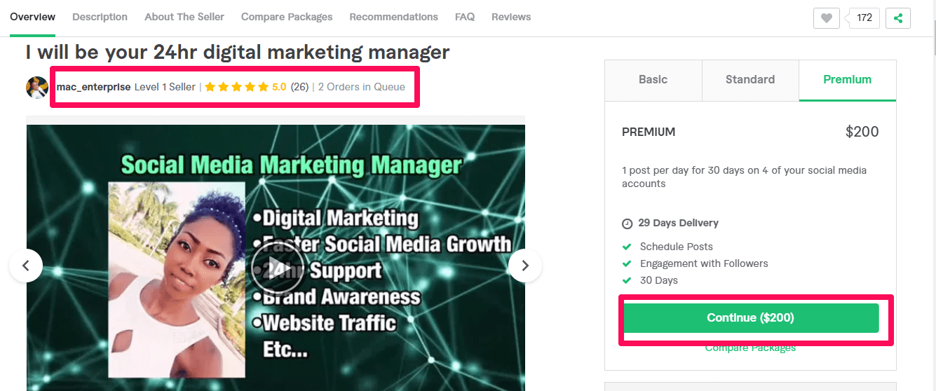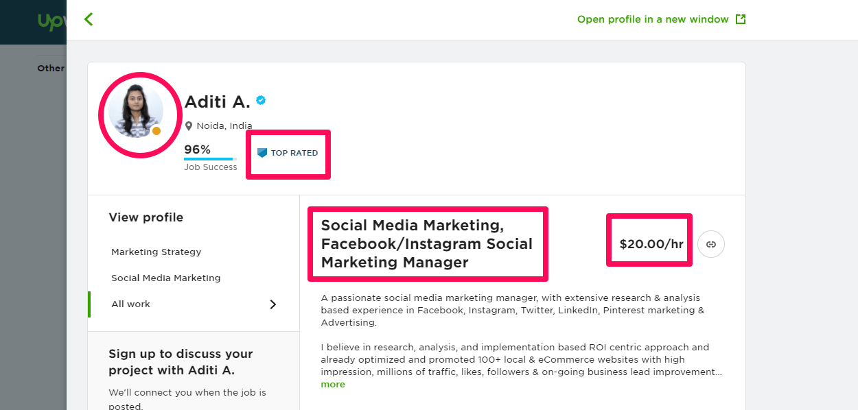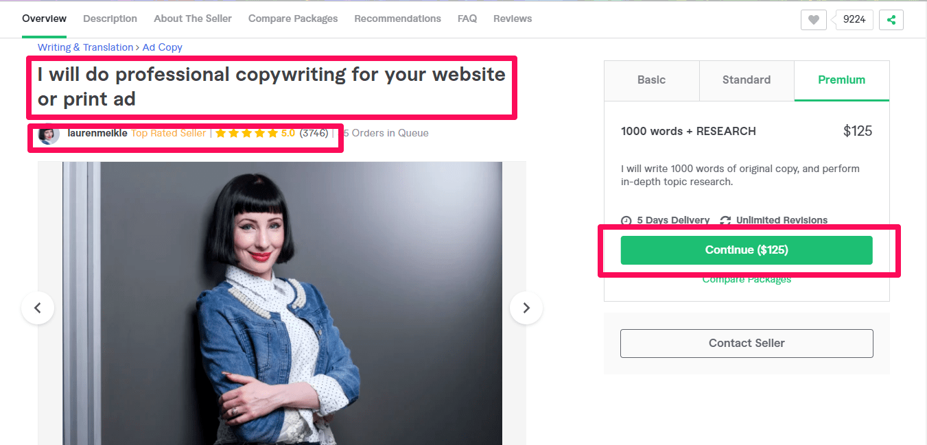 An example of a woman who works from home as a copywriter. Source: Fiverr