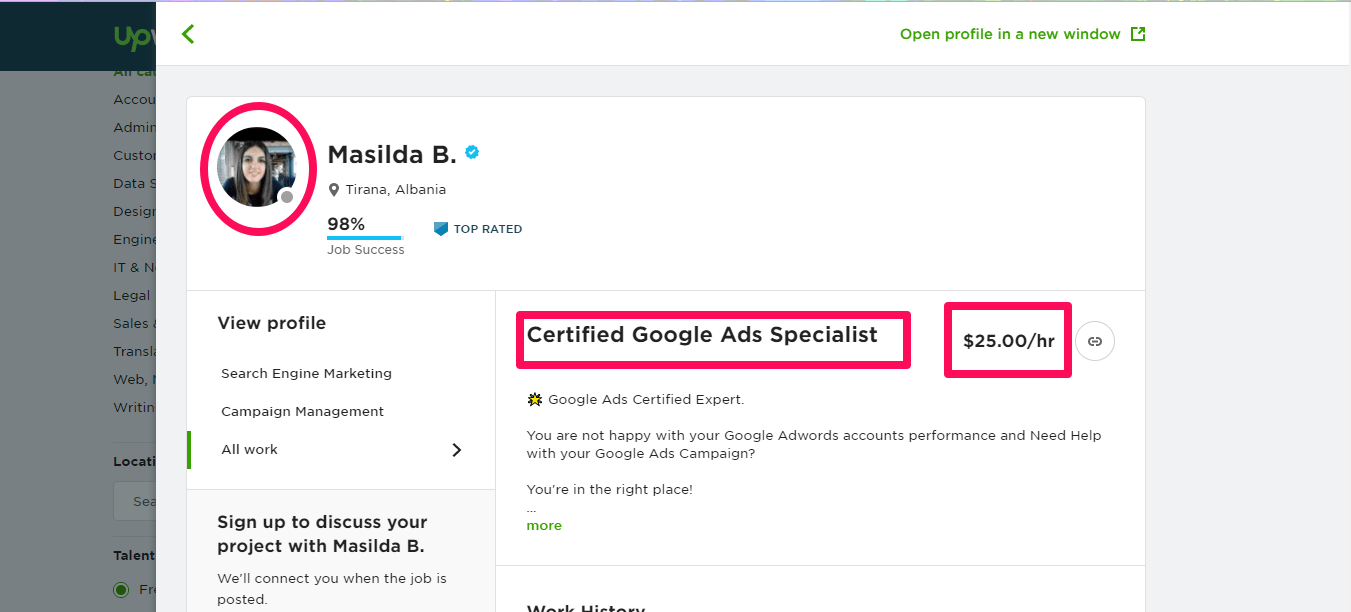 An example of a woman working as an ad specialist from home. Source: Upwork