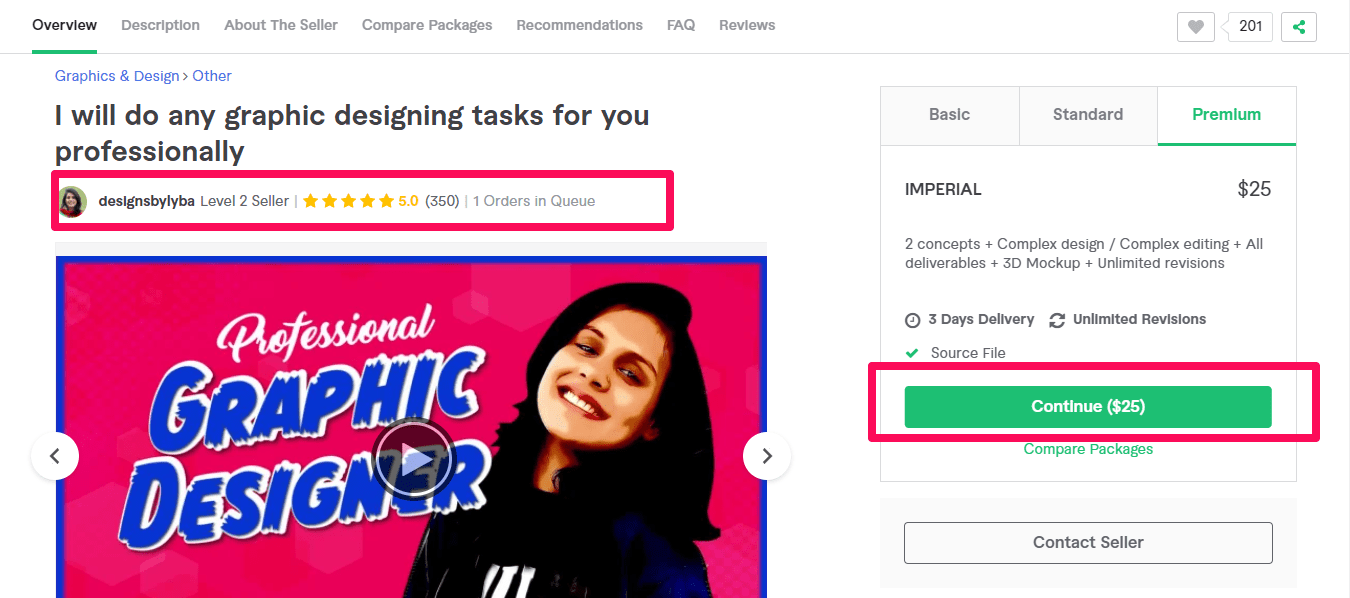 An example of a woman who works from home as a graphics designer. Source: Fiverr