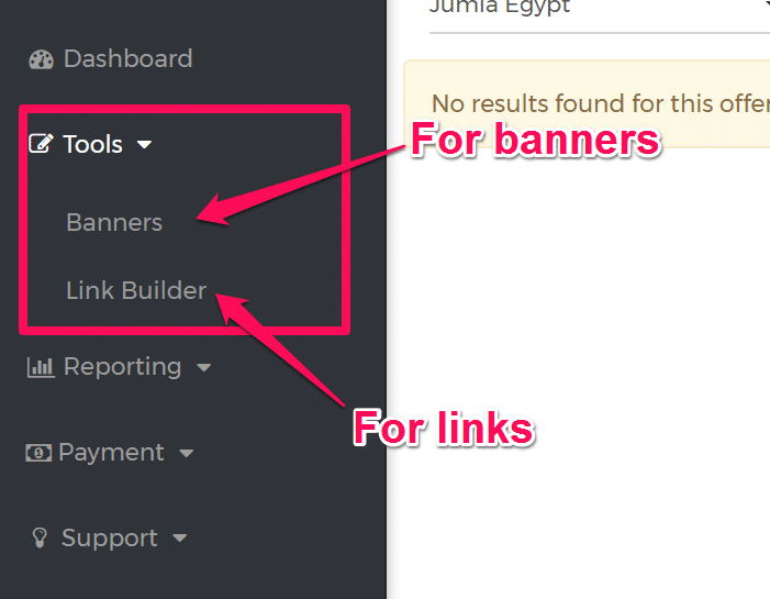 Here is a step to get affiliate links or banner links with Jumia.