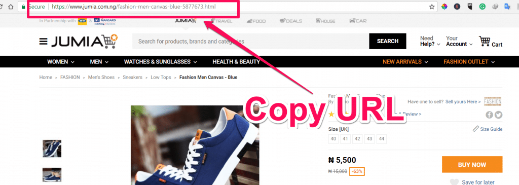 - Go to Jumia.com as if you’re a visitor then copy the URL of the product you want to promote on your website.