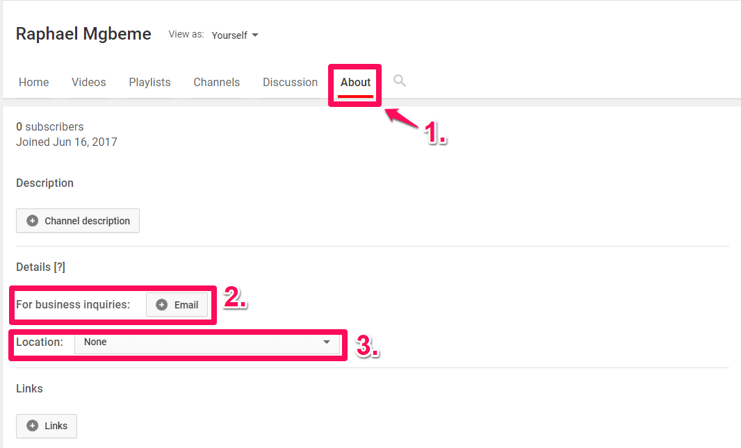 If you own a business, you should input your business which makes it easier for your prospects and visitors to find your YouTube channel easily.