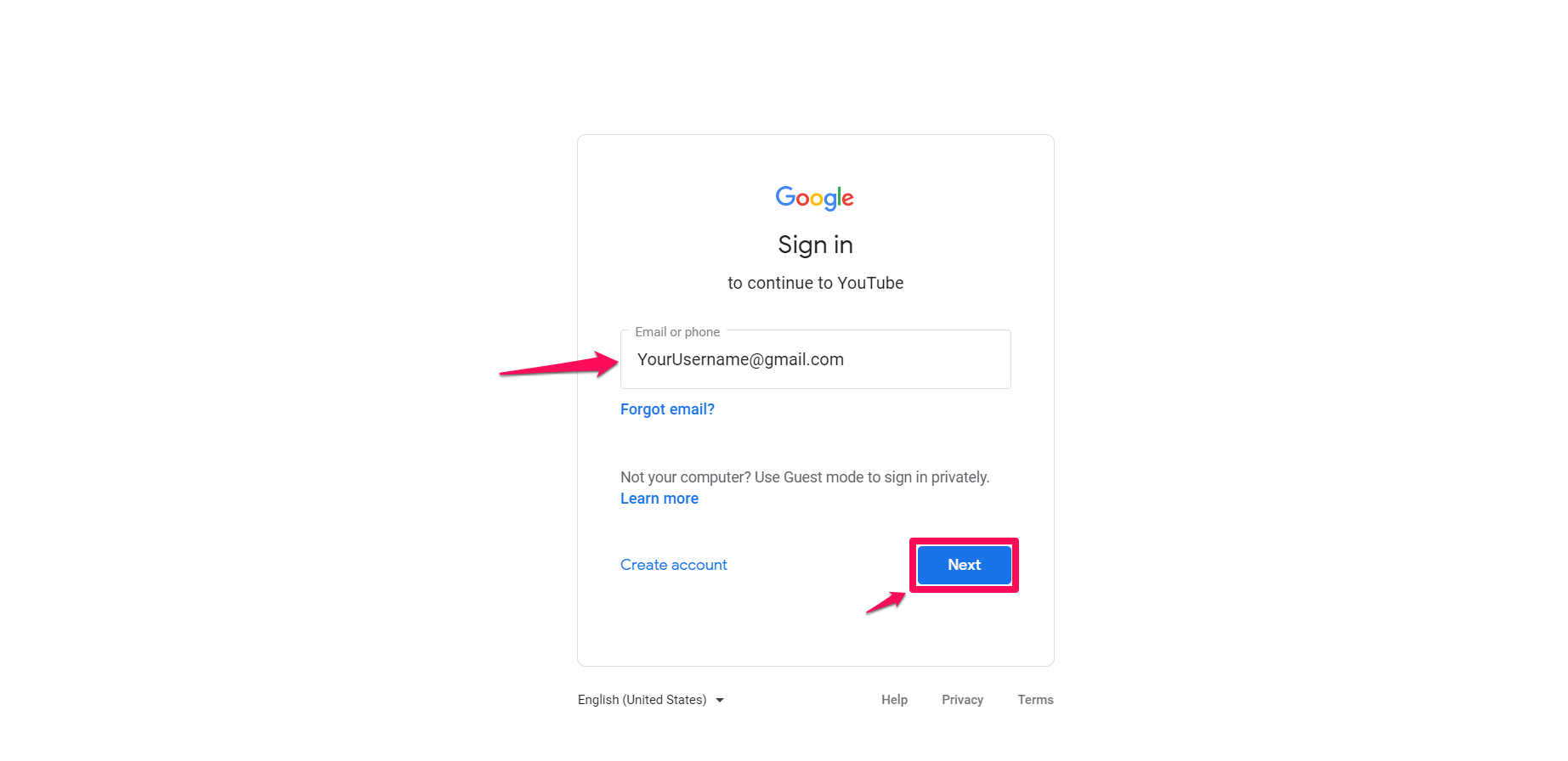 When you are on the YouTube website page, sign in into YouTube using your Google mail details. The reason why you are required to log in using your Google mail account details is that YouTube is owned by Google.