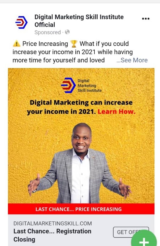 Another instance is while you are going through your newsfeed on Facebook, you may come across an image or a video advertising digital marketing skills, which is an example of a paid ad.