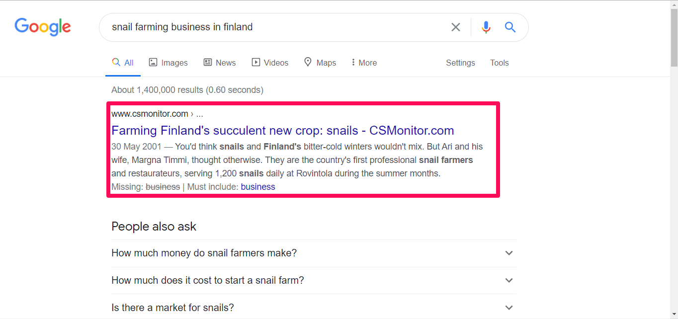 The same goes for Search Engine Optimization. A user who comes to google and searches for your business or where to get snails from.