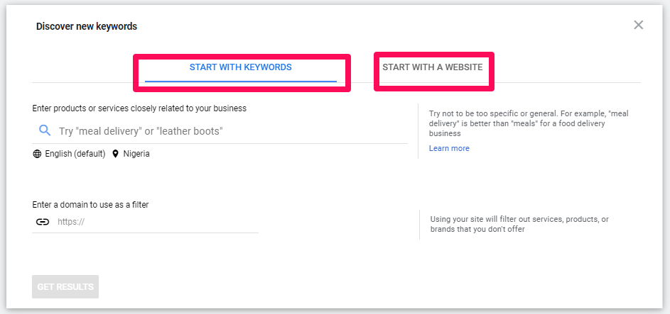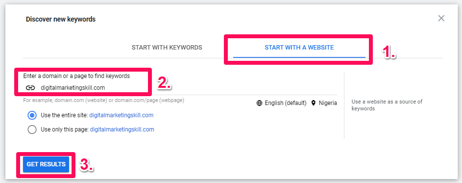 From this image below, you can choose to discover keywords and similar keywords by inputting a keyword or inputting a web address to see keywords the website is driving traffic with.